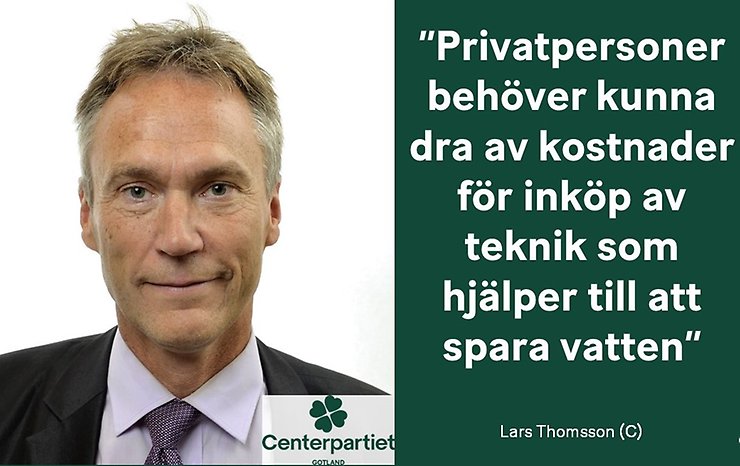 Akut vattenbrist har blivit ett normaliserat och återkommande fenomen på många håll över hela Sverige. På Gotland har vi numera tankbilar som kör ut vatten till drabbade platser sommartid och vi bygger bräckvattenverk för att säkra tillgången till rent dricksvatten. Men det är inte bara Gotland som drabbas av vattenbrist. Från Vellinge i söder till Haparanda i norr hade man i augusti månad antingen bevattningsförbud eller krav på begräsningar av vattenanvändning.
