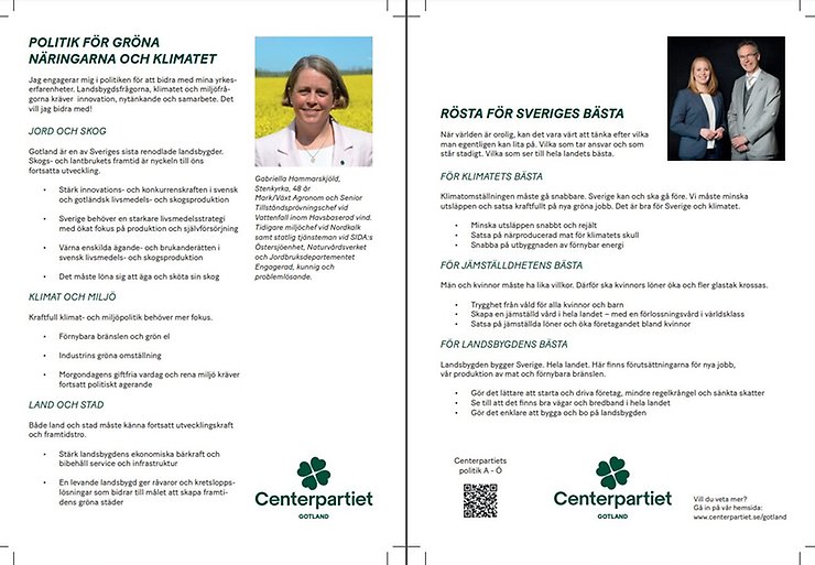 PÅ LÄNKEN NEDAN FINNS CENTERPARTIETS VALFOLDER TILL RIKSDAGEN 2022 FÖR LÄSNING I PDF-FORMAT. KLICKA PÅ LÄNKEN SÅ ÖPPNAS DEN DIGITALA FOLDERN.
