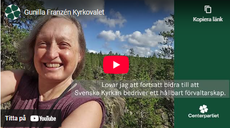 Gunilla Franzén är en av alla kandidaterna till kyrkovalet som spelat in en egen film inför kyrkovalet. Klicka på bilden så kommer du till filmen på YouTube.