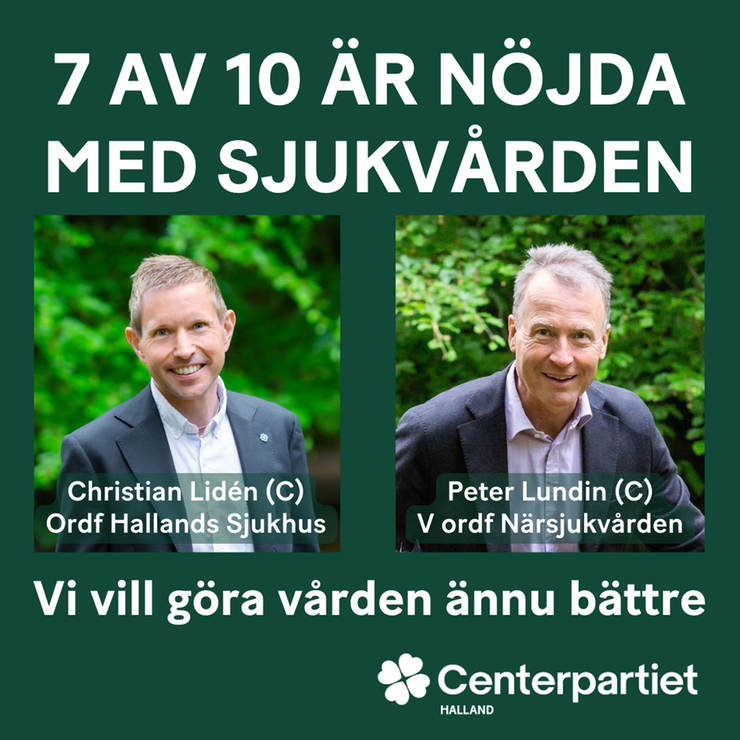 - Att invånarna ger så gott betyg är ett fint kvitto på den goda vård som ges i Region Halland varje dag. Samtidigt ser vi att det finns stora utmaningar som kräver nya arbetsmetoder och ansvarstagande för att framgent lyckas ge en kvalitativ vård till alla i Halland, säger Christian Lidén (C) ordförande för Hallands Sjukhus.