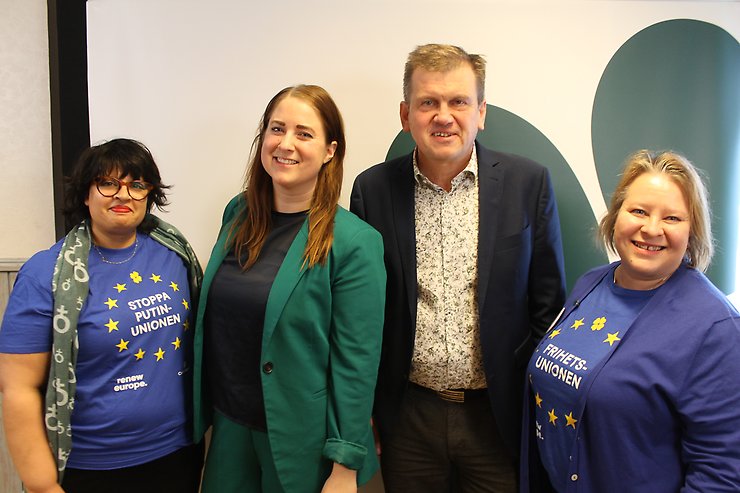 Jenny Håkansson, Emma Wiesner, Harald Lagerstedt och Anu Majkvist vill rädda näbben på kycklingen och grisknorren. Därför vill de arbeta för att EU blir mer svenskt. Foto: Angeline Eriksson
