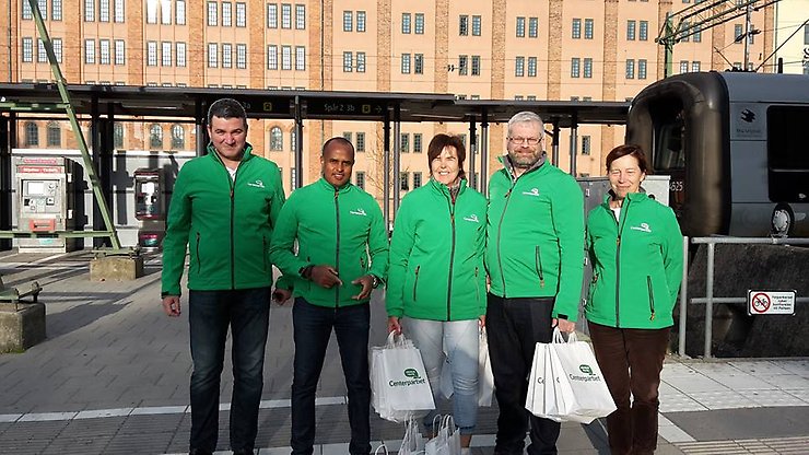 Ett glatt gäng delade på centralstationen i Kristianstad ut påsar med äpple, plåster och med budskapet att vården skall finna nära i hela landet.