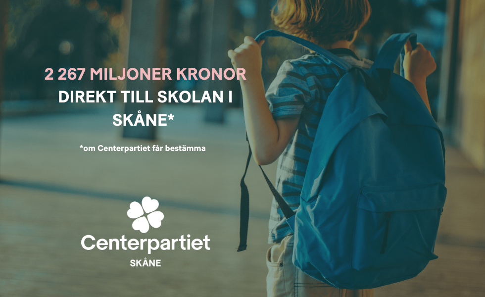 Vi behöver en skola där varje elev får förutsättningar att lyckas. Alla elever har rätt till en bra utbildning, oavsett var man bor, oavsett bakgrund eller kön. Utbildningen ska hålla hög kvalitet, från förskolan, ända upp till universitets- och forskningsnivå. Utbildning är en av grundstenarna i vårt demokratiska samhälle. Därför sattsar Centerpartiet nu stort på skolan i hela landet. I vårt budgetförslag föreslår vi i år 2 267 miljoner extra till skolan bara i Skåne. Det är ca 720 miljoner mer än vad Tidö-partiernas budget erbjuder.