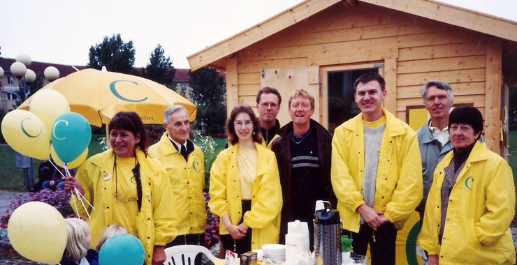 Bilden visar centerpartister vid vår valstuga i Rissne inför valet 1998.