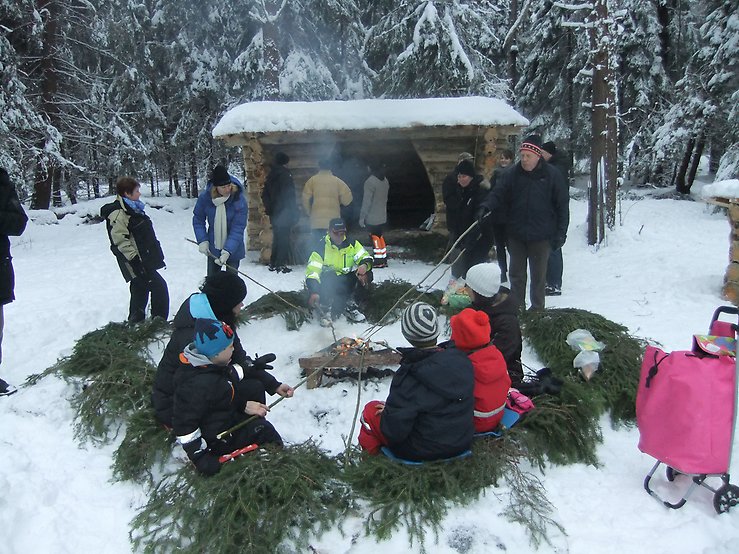Ett led i utvecklingsarbetet och tillgängligheten är det nya vindskyddet. Friluftsfrämjandet har efterfrågat att vi skulle återskapa ett vindskydd i Stolpaskogen då det tidigare har funnits ett. Nu har kommunen byggt ett på gammalt sätt. Virket kommer från skogen och har dragits fram med häst.