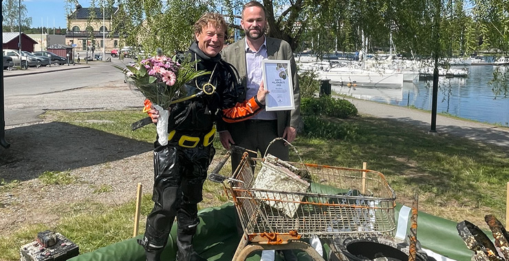 – Att med dykare och repdragare lyfta upp 40 kilos batterier och 80 kilos lastbilsdäck över kajkanter där allting har en förmåga att fastna är tungt och skitigt. Det känns dock bra i hjärtat att göra en insats för miljön och det känns ännu roligare när det uppmärksammas så här, säger Fredrik Johansson, ordförande för Rena Mälaren.