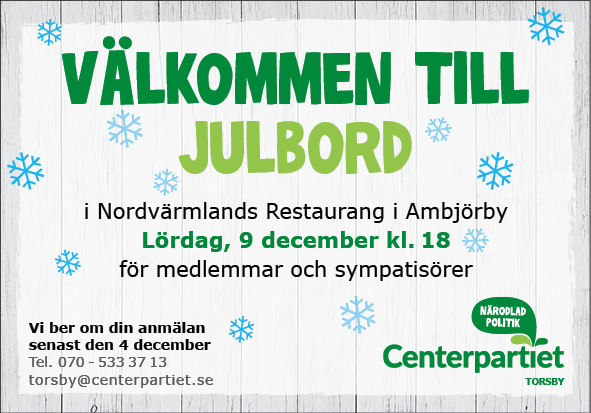 Lördag 9 december kl. 18 i Nordvärmlands Restaurang i Ambjörby