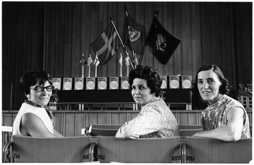 Bild: Svenska Landsbygdens kvinnoförbund, SLKF, som bytte namn till Centerpartiets kvinnoförbund och senare till Centerkvinnorna har haft stor betydelse för jämställdhetsarbetet både inom och utanför partiet. Från vänster Karin Andersson, Sveriges första jämställdhetsminister, i Fälldinregeringarna 1979–1982, tillsammans med Kerstin Perers Dalarna och Sonja Fredgard ordförande för Centerkvinnorna 1966–1979. Bilden är från riksstämman i Dalarna 1969. Länk till bilden på Flickr.